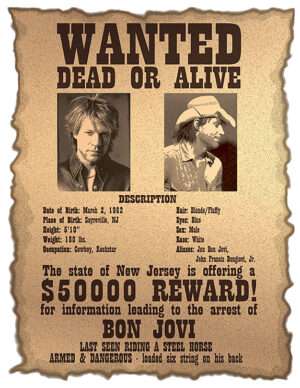 Jon Bon Jovi Wanted Dead Or Alive Poster Iron On Transfer #2